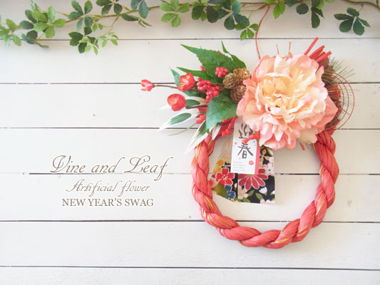*お正月飾り*しめなわリース(芍薬×梅)〜Vine and Leaf のお正月〜