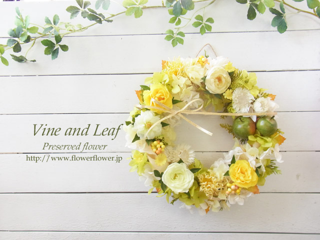 プリザーブドローズと青りんごのリース〜ギフトに喜ばれるプリザーブドフラワー [戻る]