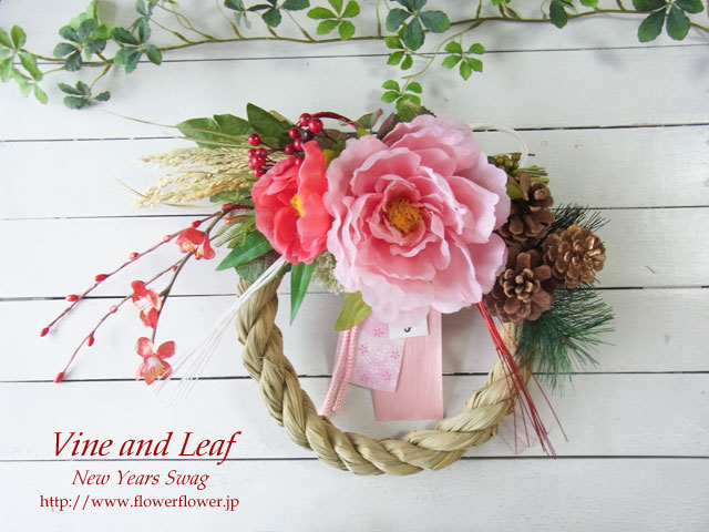 *お正月飾り*しめなわリース(ピンク×木の実)[W-17169] [戻る]