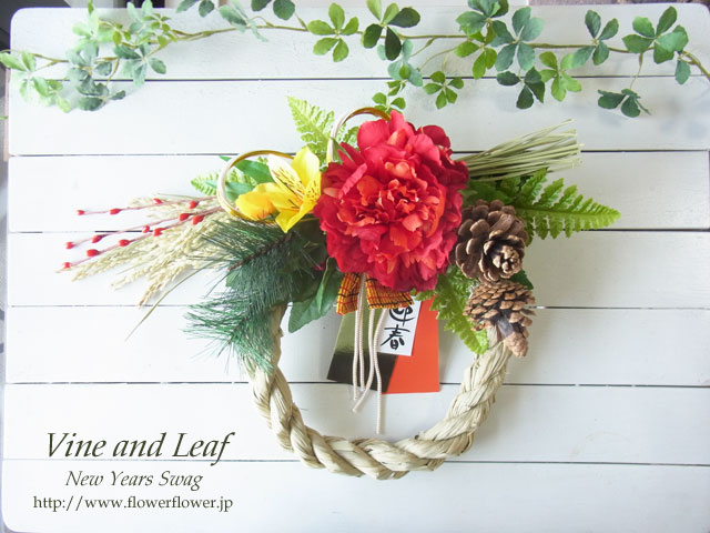 *お正月飾り*しめなわリース(レッド×木の実)[W-17147] [戻る]