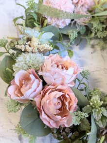 バラとマムのアーティフィシャルフラワーリースです。