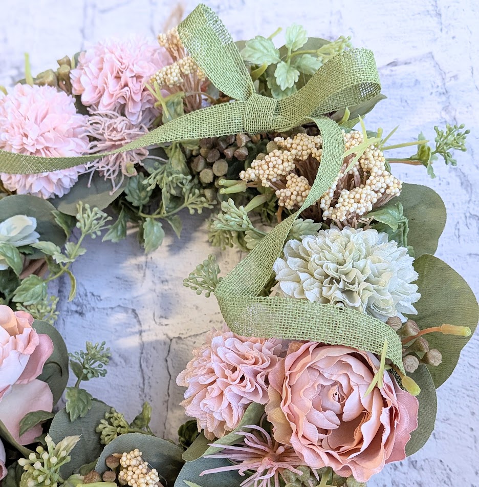 ホームアーティフィシャルフラワーバラとマムのアーティフィシャルフラワーリース