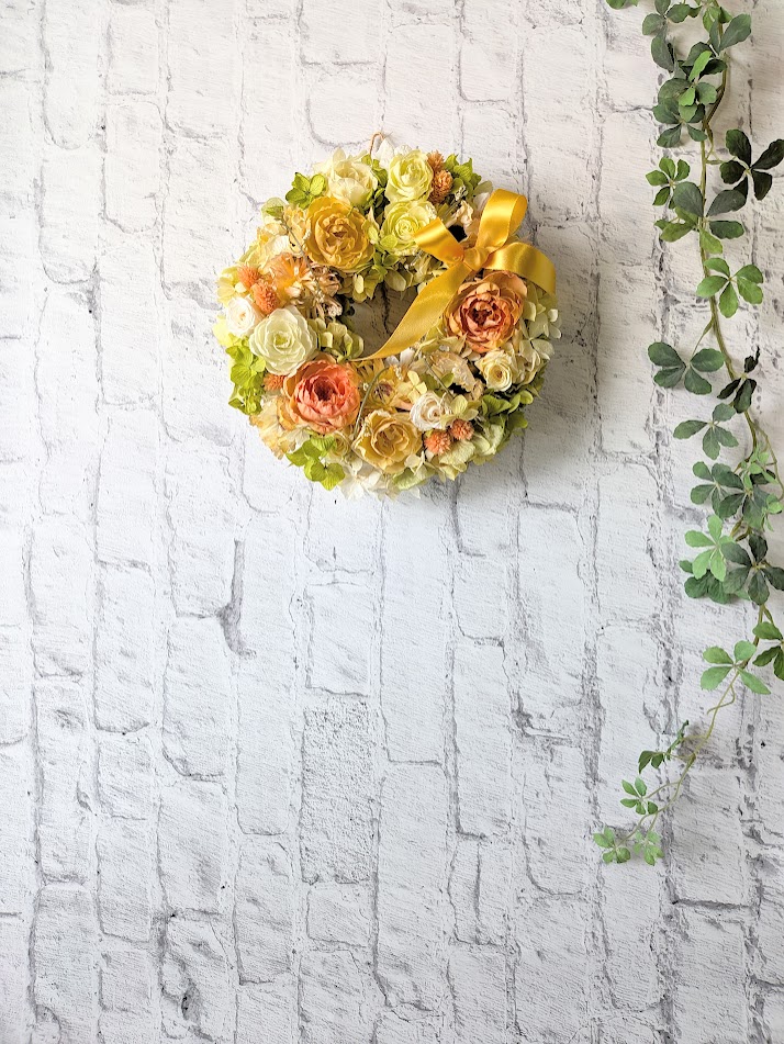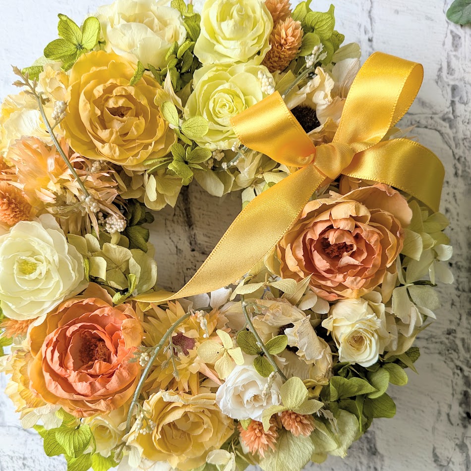 プリザーブドローズいっぱいのリース(オレンジイエロー)[p20261011]
