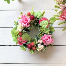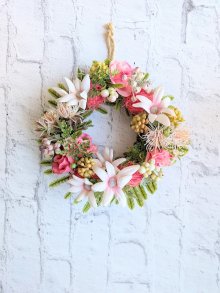 フランネルフラワーとピンクローズのアーティフィシャルフラワーリースとミニリース(2点セット)[a20261003]