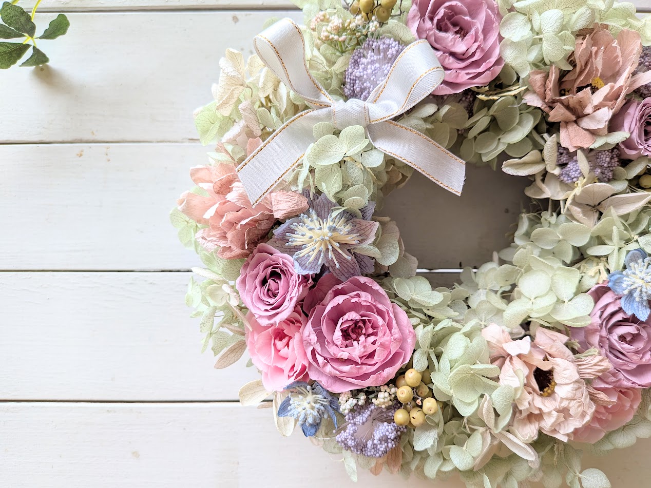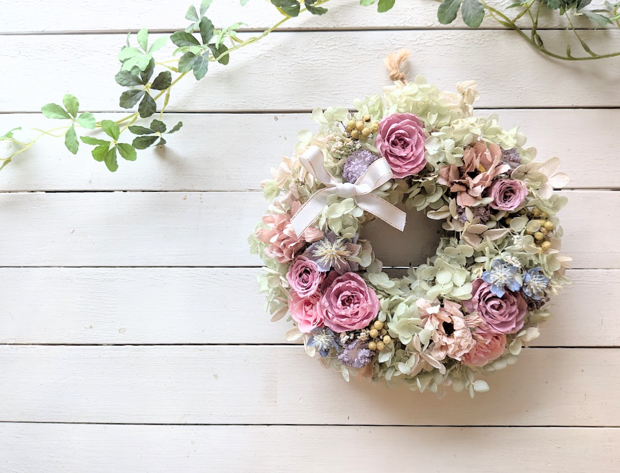 フラワーリースのVine and Leaf(ヴァインアンドリーフ)です。世界にたった一つのフラワーリースをおつくりします。