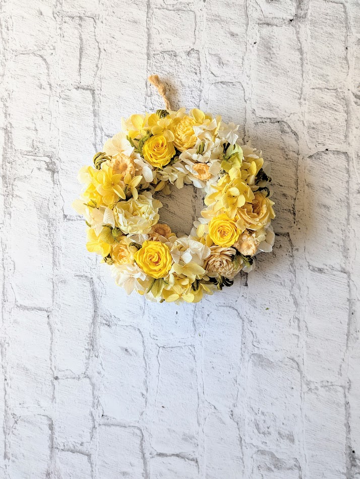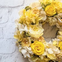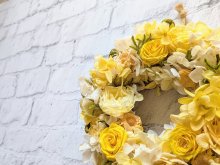 黄色のバラのスプリングシャワーリース(プリザーブドフラワー)[p20261016]