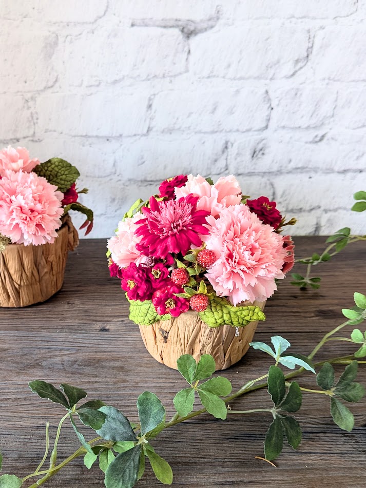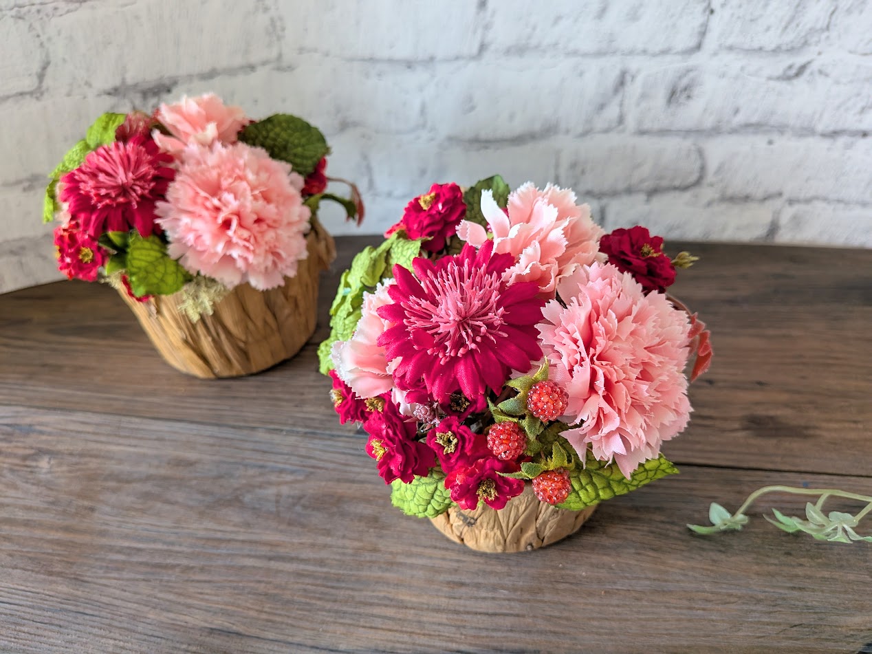 【使用花材】アートフラワー(カーネーション、デイジー、ミニバラ、ベリー、ミント)