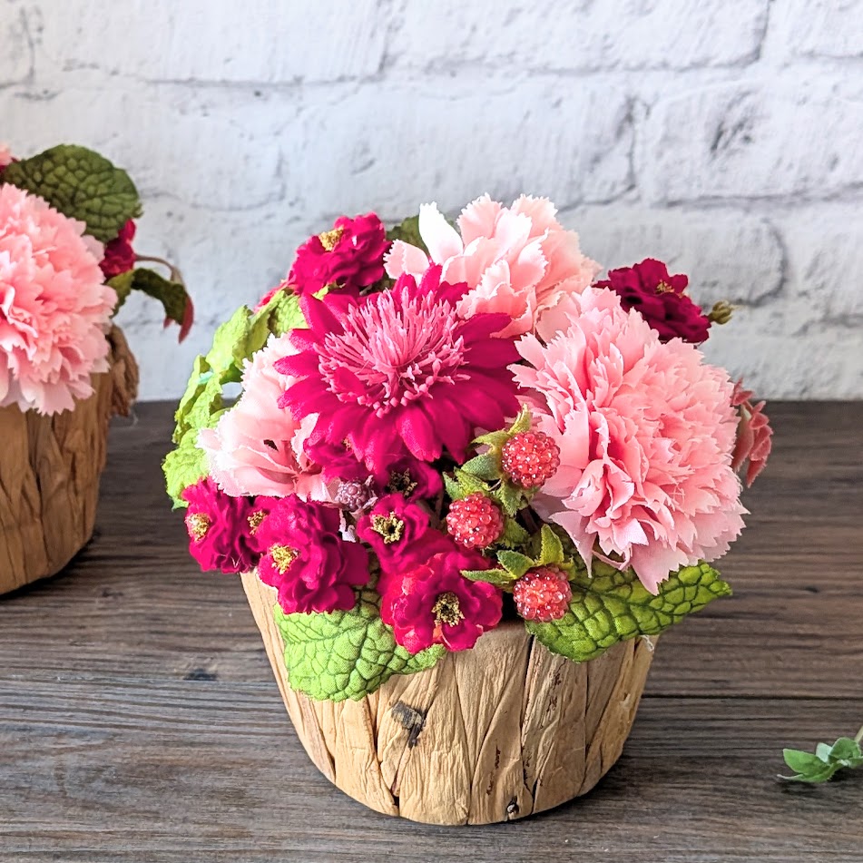 ホームアーティフィシャルフラワー【母の日ギフトに】カーネーションと野イチゴのバスケットアレンジ(アーティフィシャルフラワー)